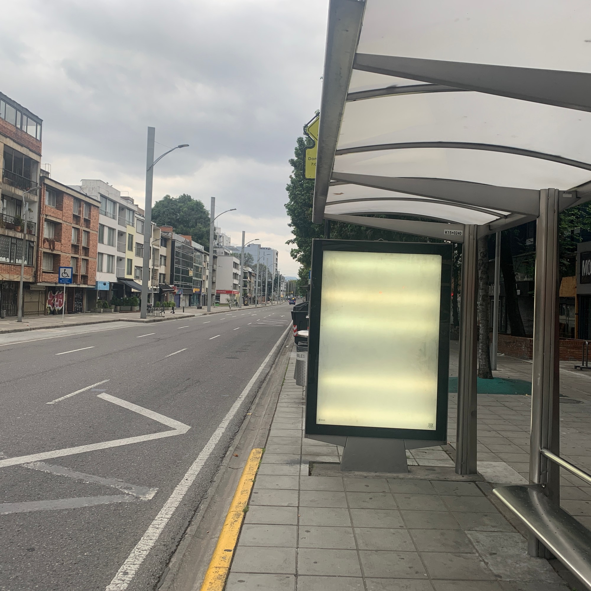 Seguimos en la 15 con un mensaje adecuado de una joyería, una parada de bus publicitaria que no tiene nada que decir y un Sendero Peatonal por donde no pasan peatones ni en cuarentena