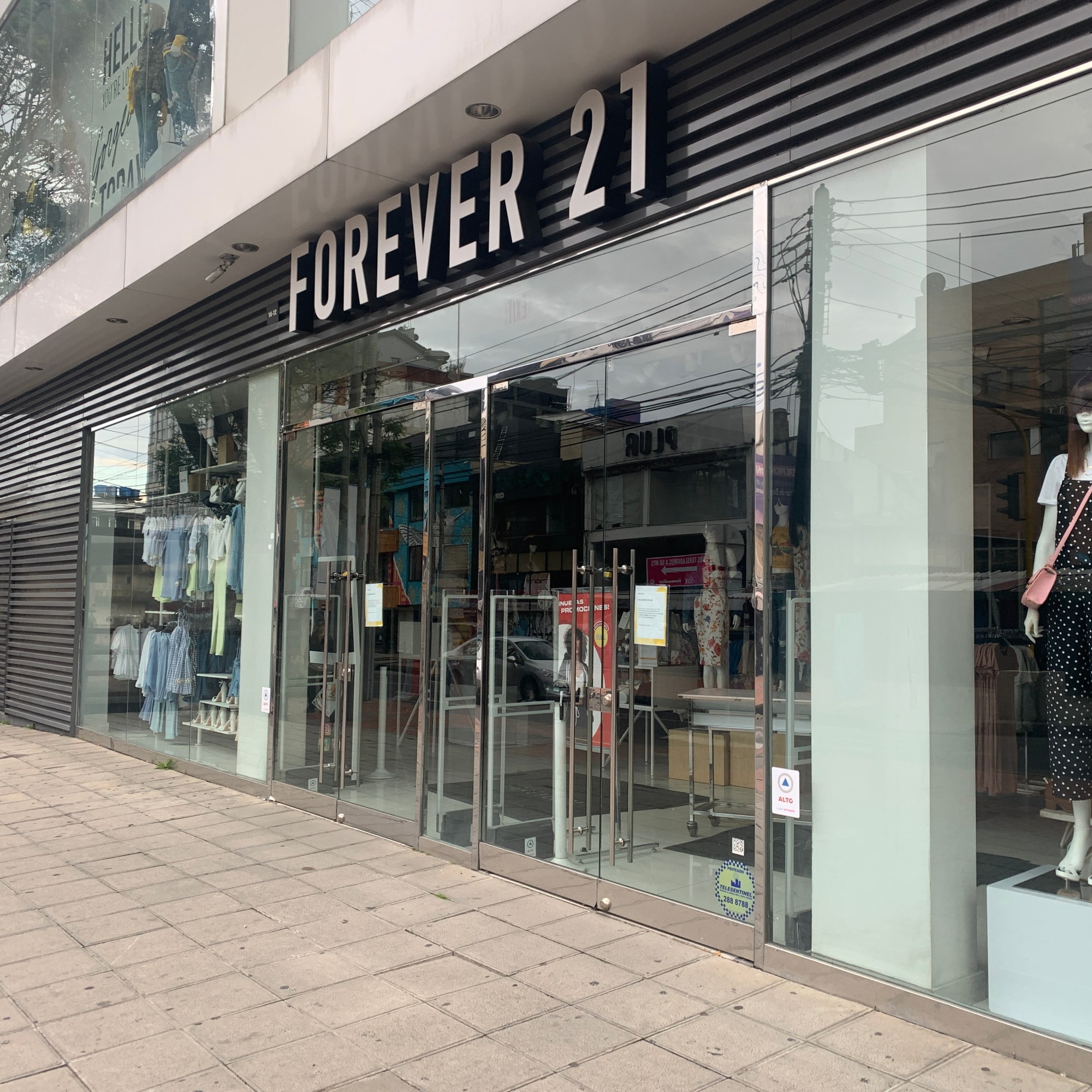 Forever 21 nos deja un mensaje subliminal, Crepes & Waffles con las marcas de la fila del distanciamiento en frente y una T como nunca antes la había visto